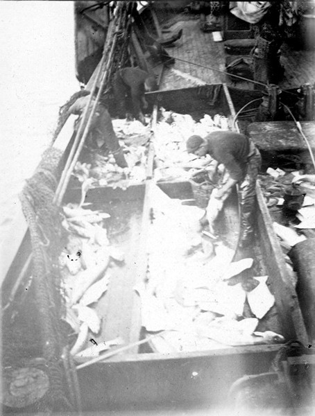 Togarinn Brimir NK 75 að landa síld í Fóðurmjölsverksmiðjuna 1936. Úr safni Salgerðar Jónsdóttur.